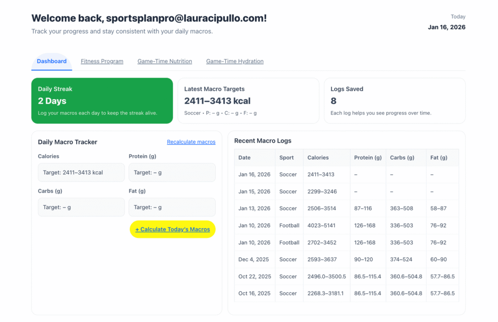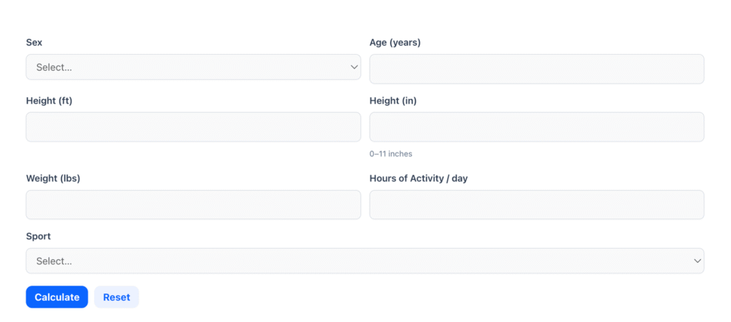 This calculator helps you make the most of Game & Practice days with data-driven guidance tailored to your sport.